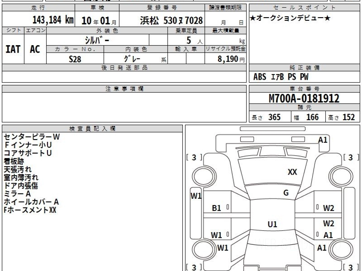 Номер кузова: M700A.