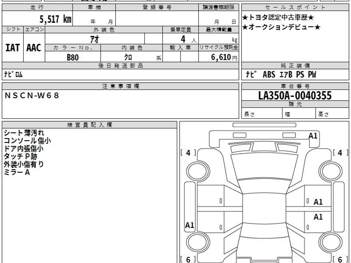 Оценка аукциона: 5, что гарантирует хорошее техническое и косметическое состояние кузова и салона.