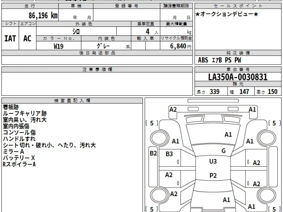 Оценка аукциона: 3.5, что гарантирует хорошее техническое и косметическое состояние кузова и салона.