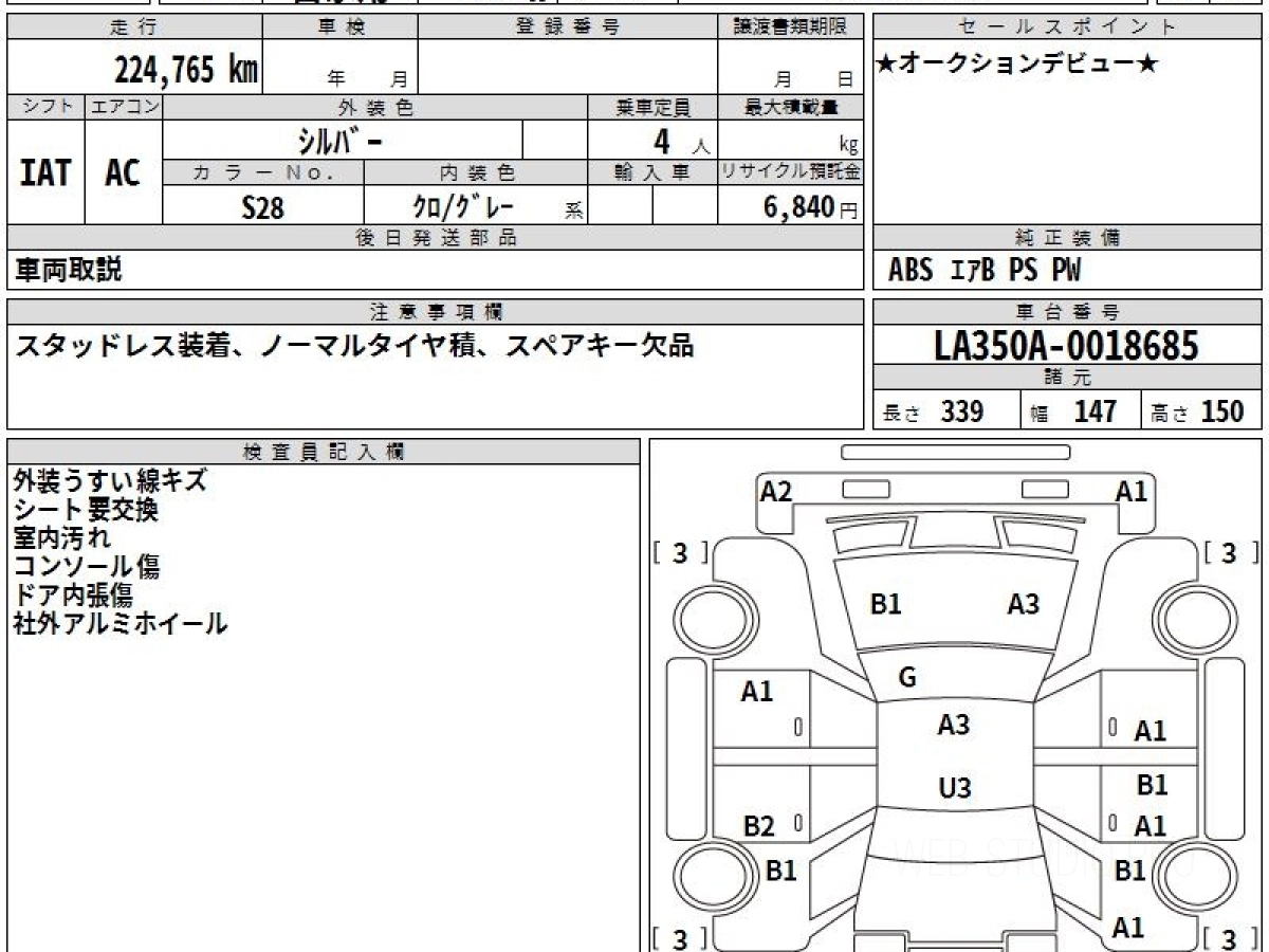 Оценка аукциона: 3.5, что гарантирует хорошее техническое и косметическое состояние кузова и салона.