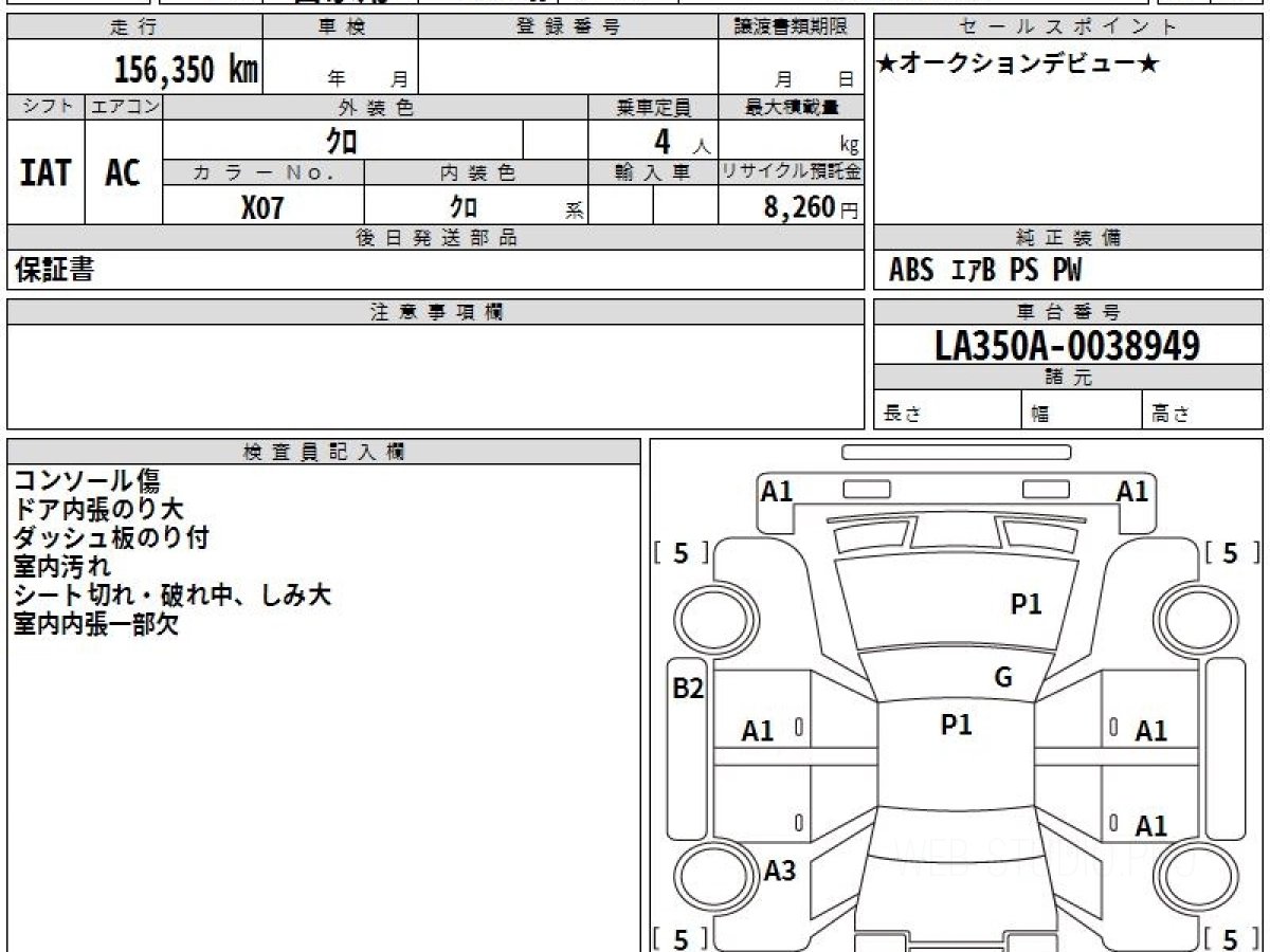 Оценка аукциона: 3.5, что гарантирует хорошее техническое и косметическое состояние кузова и салона.