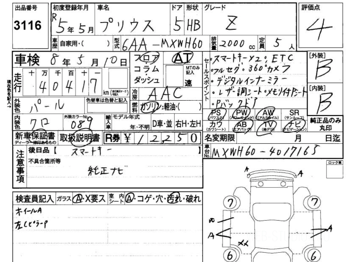 Оценка аукциона: 4, что гарантирует хорошее техническое и косметическое состояние кузова и салона.