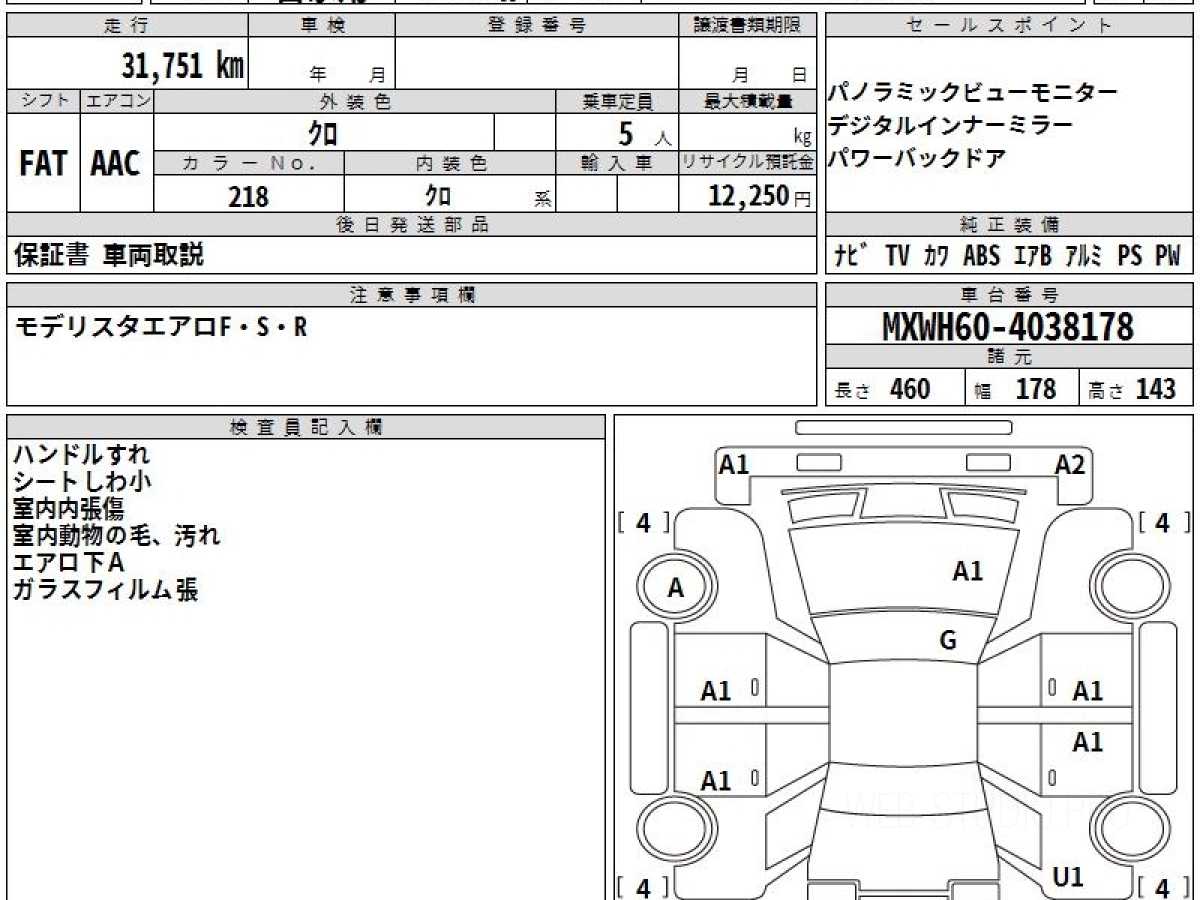 Оценка аукциона: 4, что гарантирует хорошее техническое и косметическое состояние кузова и салона.