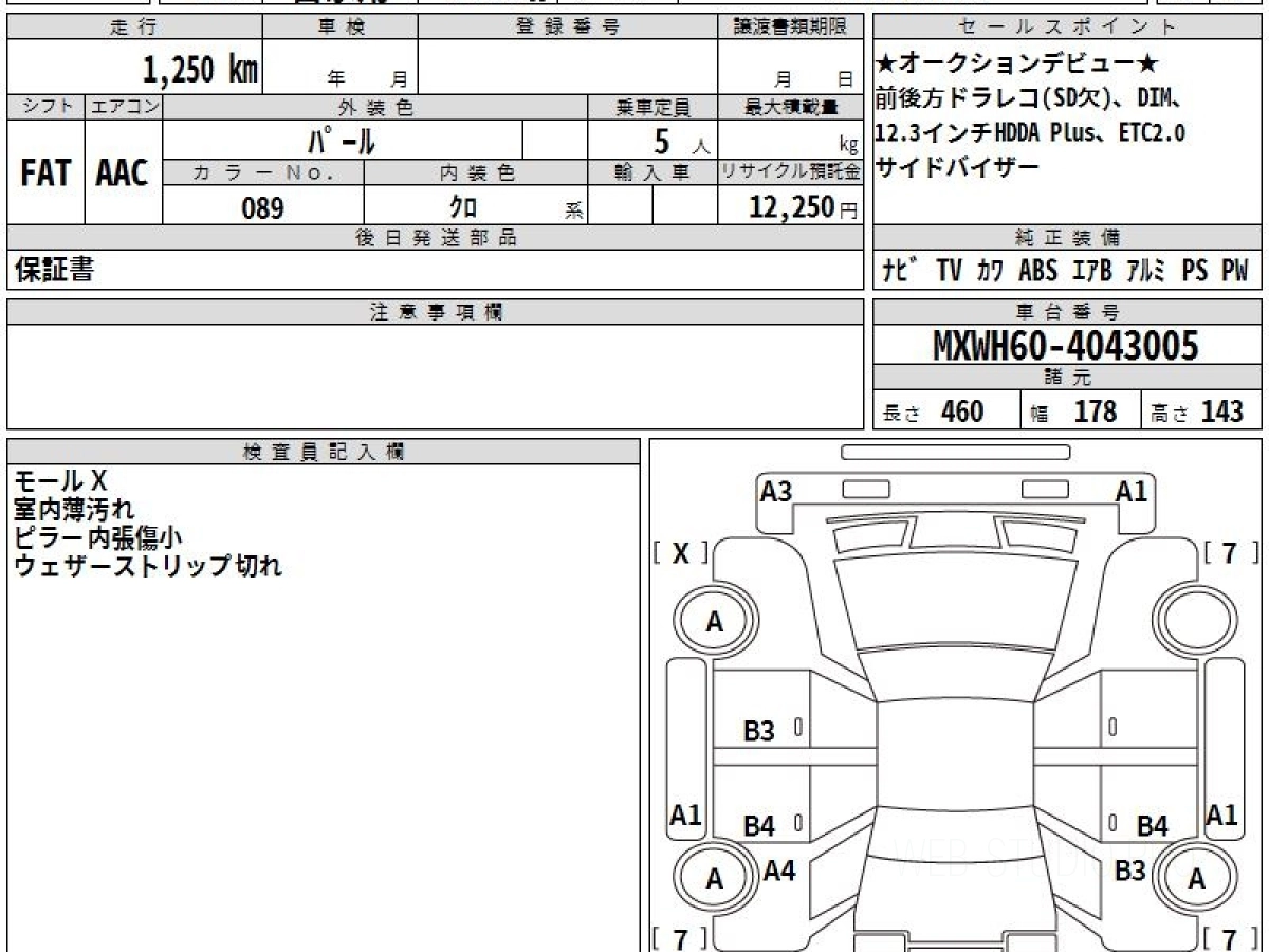 Оценка аукциона: 3, что гарантирует хорошее техническое и косметическое состояние кузова и салона.