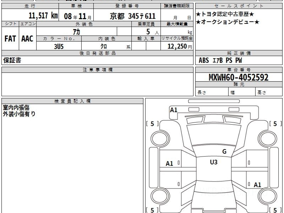 Оценка аукциона: 4, что гарантирует хорошее техническое и косметическое состояние кузова и салона.
