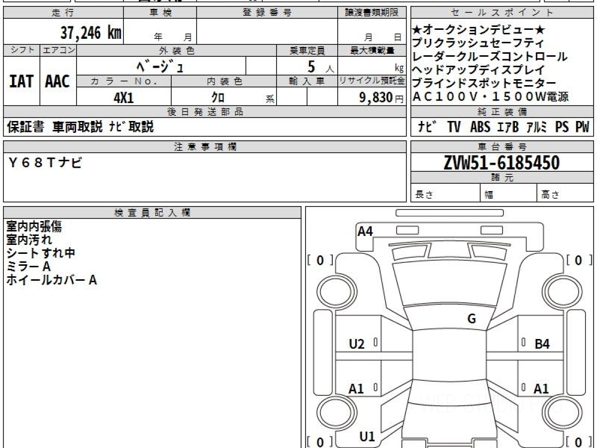 Оценка аукциона: 3.5, что гарантирует хорошее техническое и косметическое состояние кузова и салона.