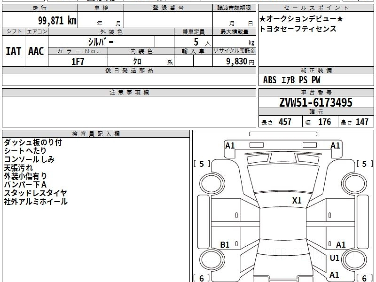 Оценка аукциона: 4.5, что гарантирует хорошее техническое и косметическое состояние кузова и салона.