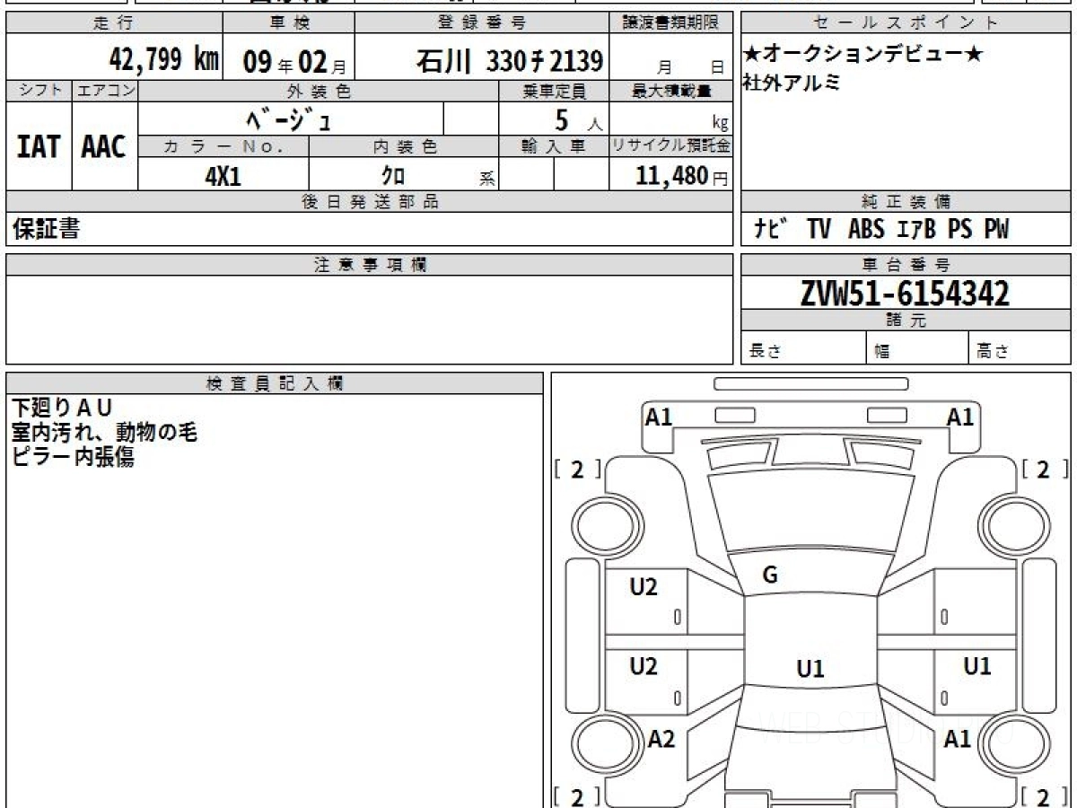 Оценка аукциона: 4, что гарантирует хорошее техническое и косметическое состояние кузова и салона.