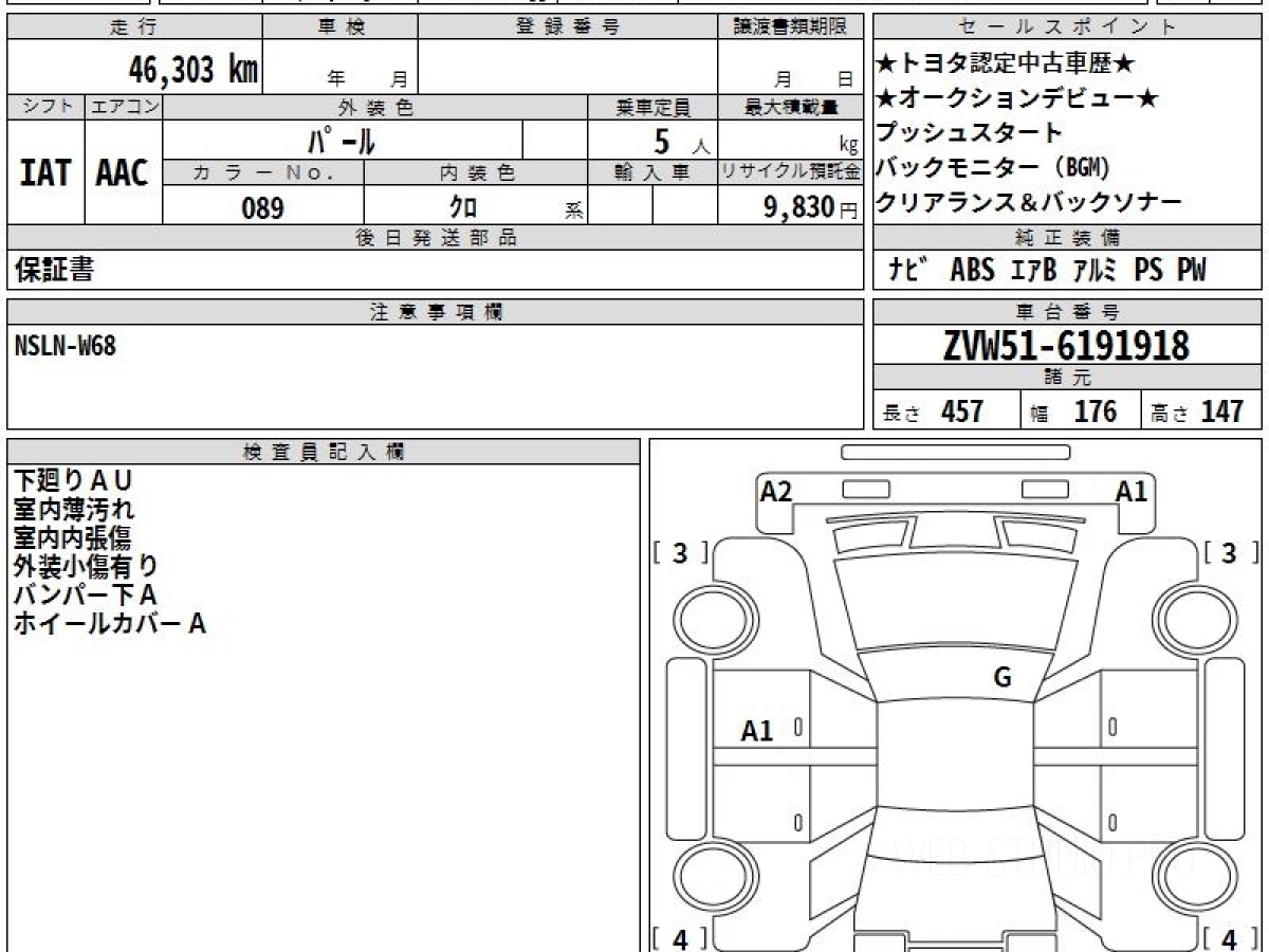 Оценка аукциона: 4.5, что гарантирует хорошее техническое и косметическое состояние кузова и салона.