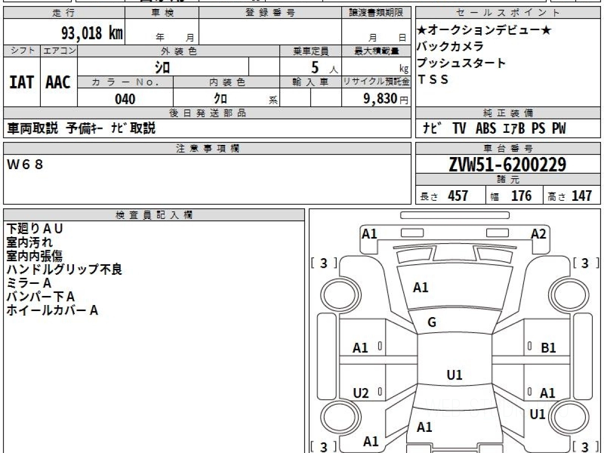Оценка аукциона: 4, что гарантирует хорошее техническое и косметическое состояние кузова и салона.