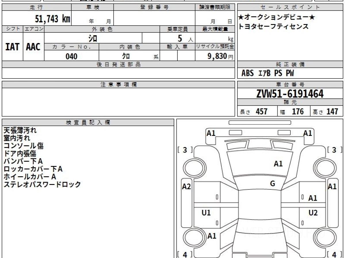 Оценка аукциона: 4, что гарантирует хорошее техническое и косметическое состояние кузова и салона.
