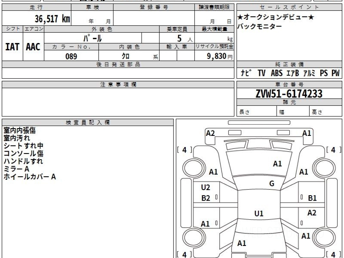 Оценка аукциона: 4, что гарантирует хорошее техническое и косметическое состояние кузова и салона.