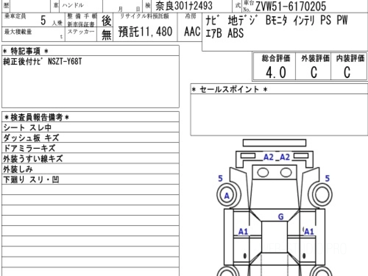 Оценка аукциона: 4, что гарантирует хорошее техническое и косметическое состояние кузова и салона.