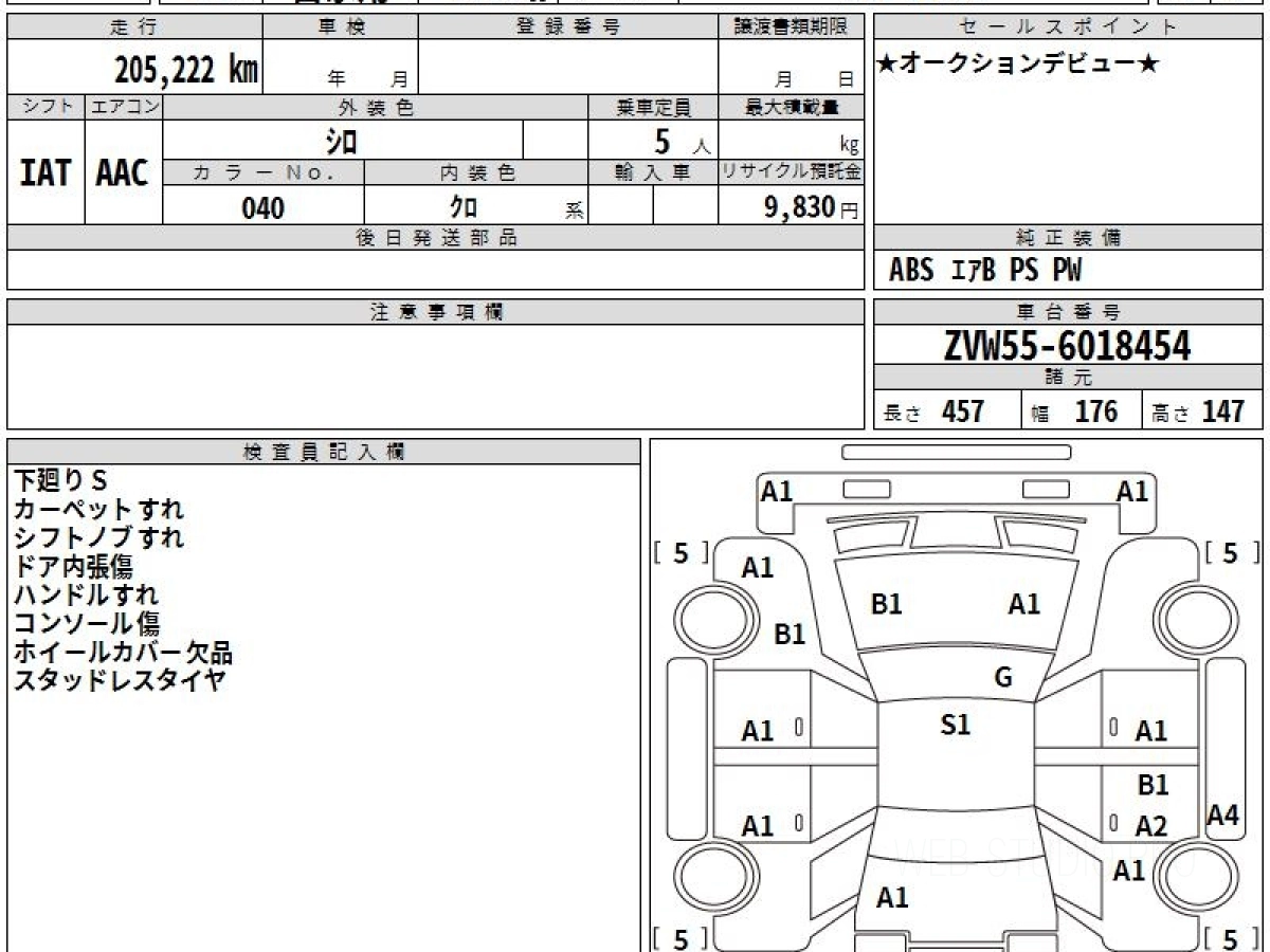 Оценка аукциона: 3.5, что гарантирует хорошее техническое и косметическое состояние кузова и салона.