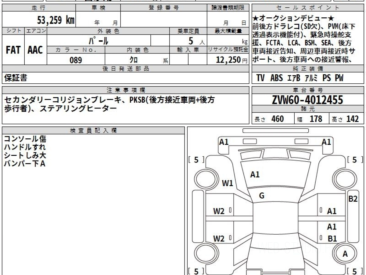 Оценка аукциона: 4, что гарантирует хорошее техническое и косметическое состояние кузова и салона.