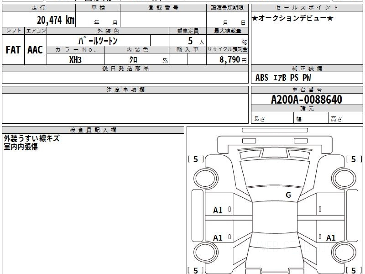 Номер кузова: A200A.