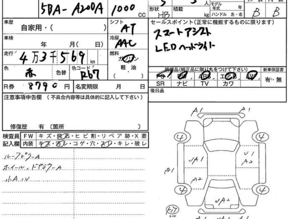 Номер кузова: A200A.