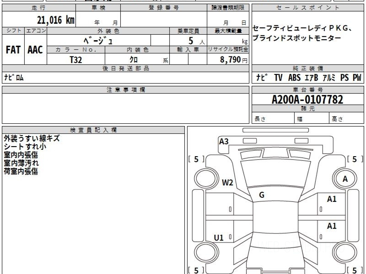 Номер кузова: A200A.