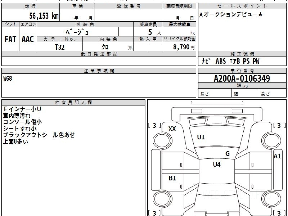 Оценка аукциона: 3.5, что гарантирует хорошее техническое и косметическое состояние кузова и салона.