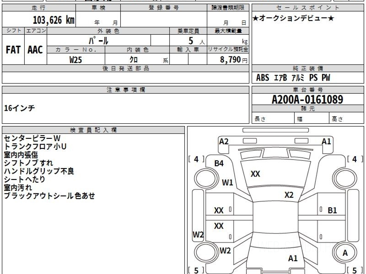 Номер кузова: A200A.