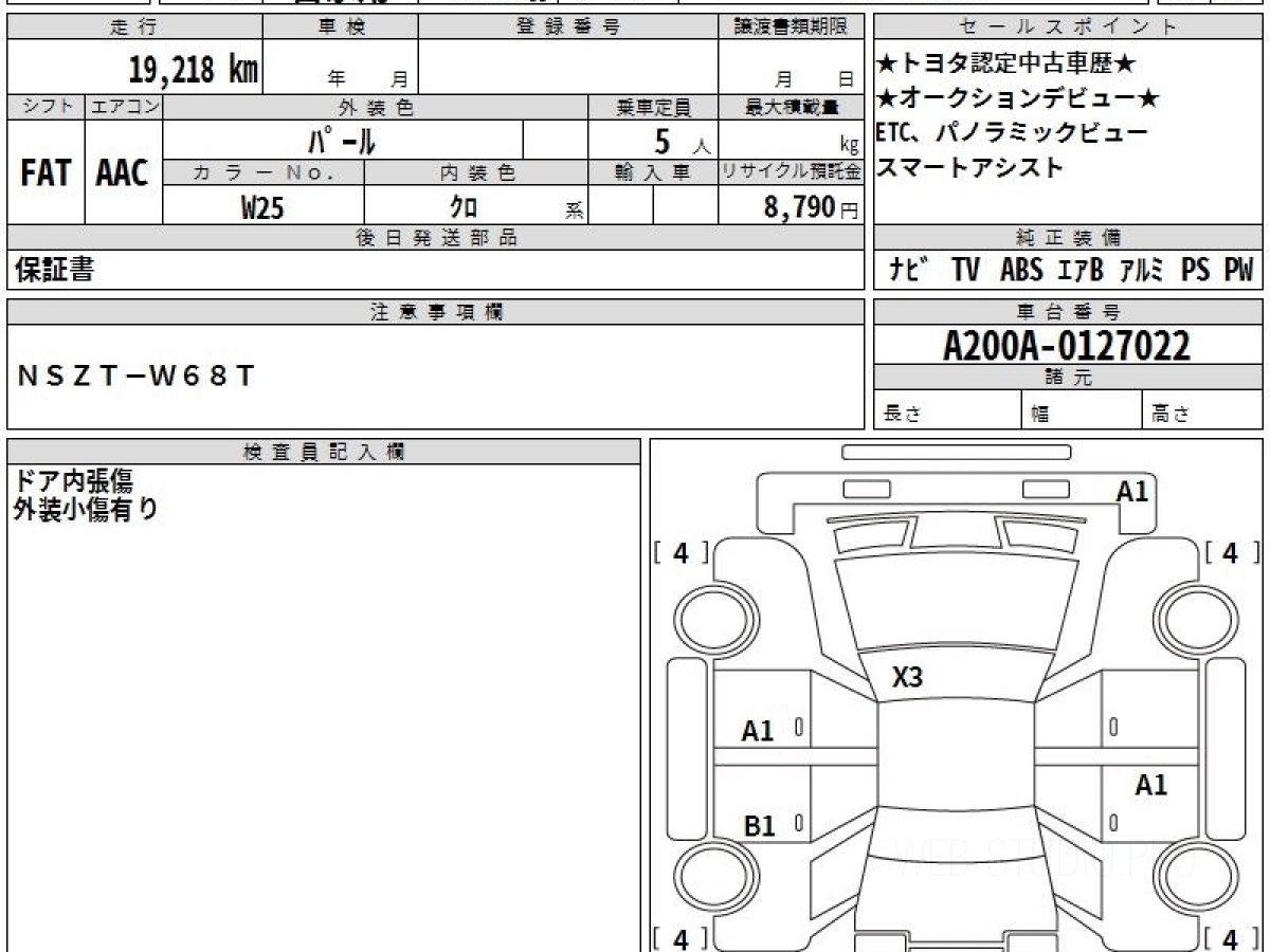 Оценка аукциона: 4, что гарантирует хорошее техническое и косметическое состояние кузова и салона.