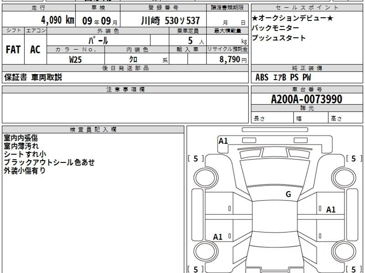 Номер кузова: A200A.