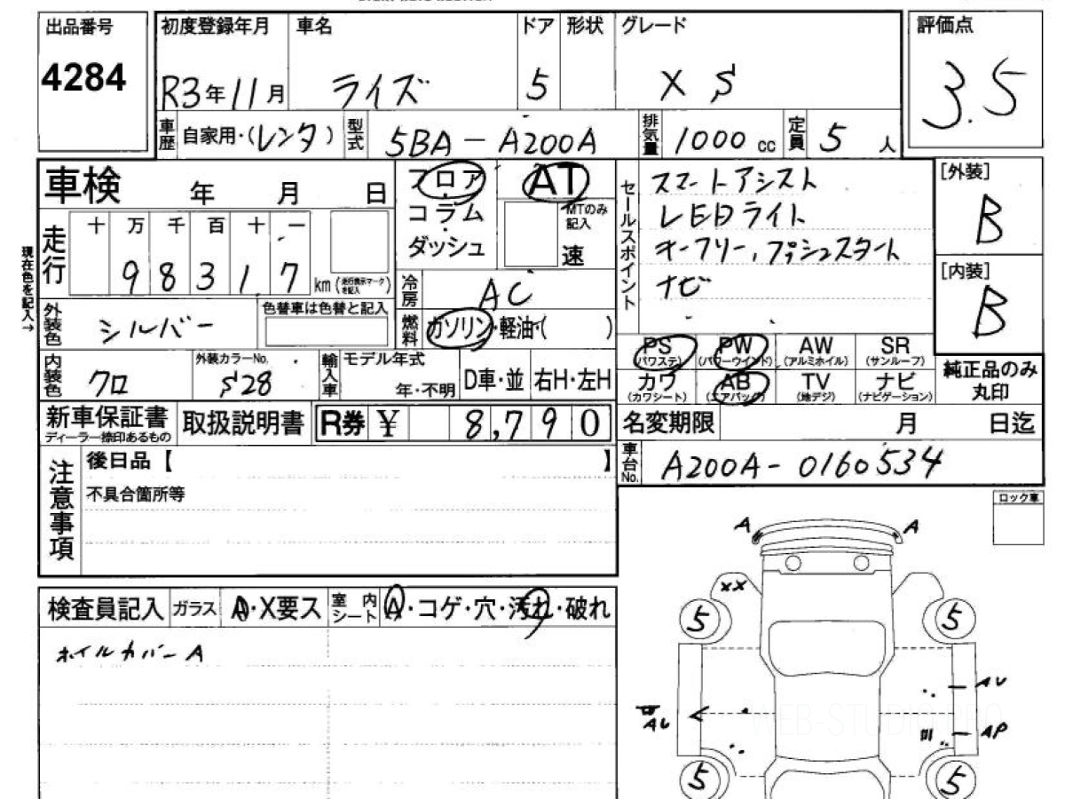 Оценка аукциона: 3.5, что гарантирует хорошее техническое и косметическое состояние кузова и салона.