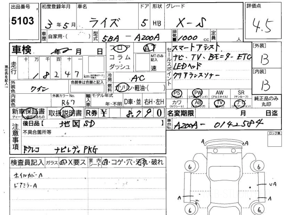 Оценка аукциона: 4.5, что гарантирует хорошее техническое и косметическое состояние кузова и салона.