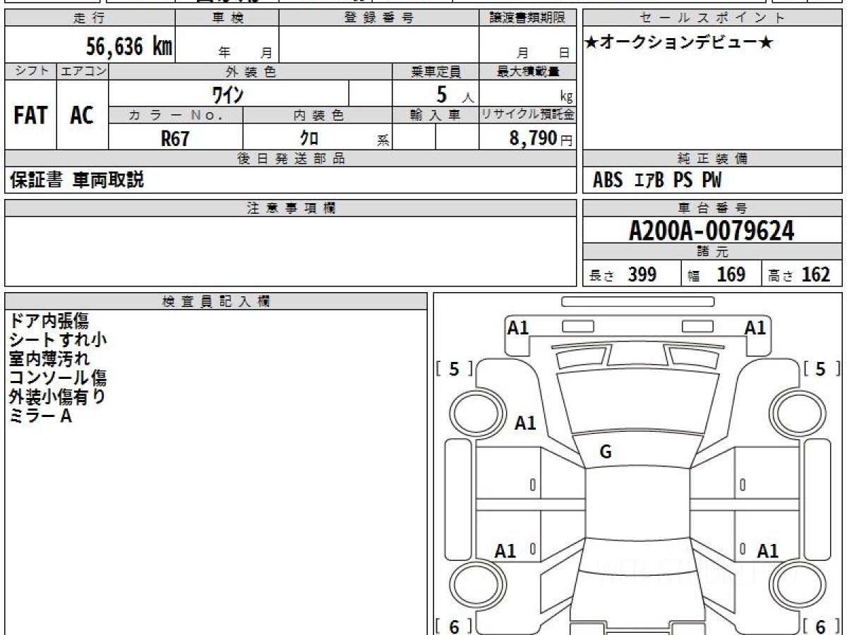 Номер кузова: A200A.