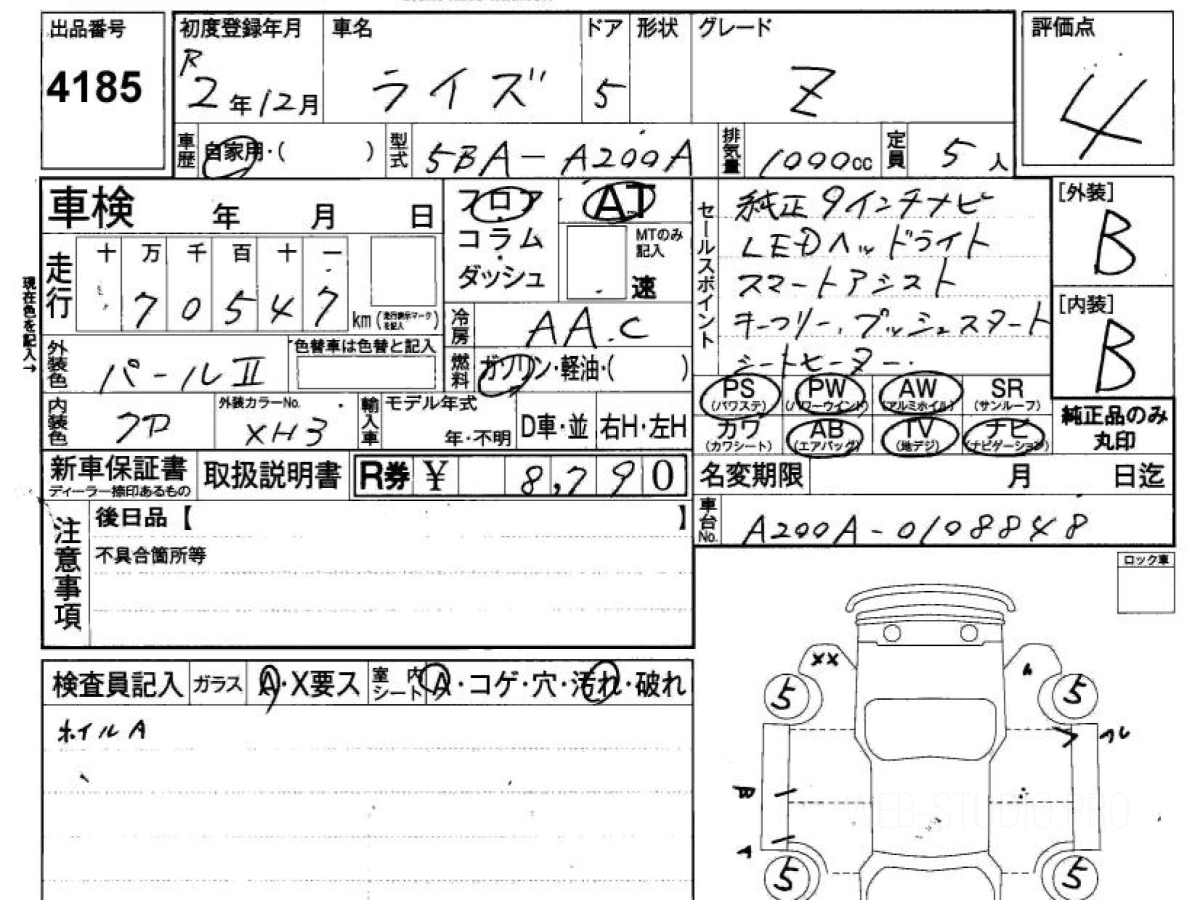 Оценка аукциона: 4, что гарантирует хорошее техническое и косметическое состояние кузова и салона.