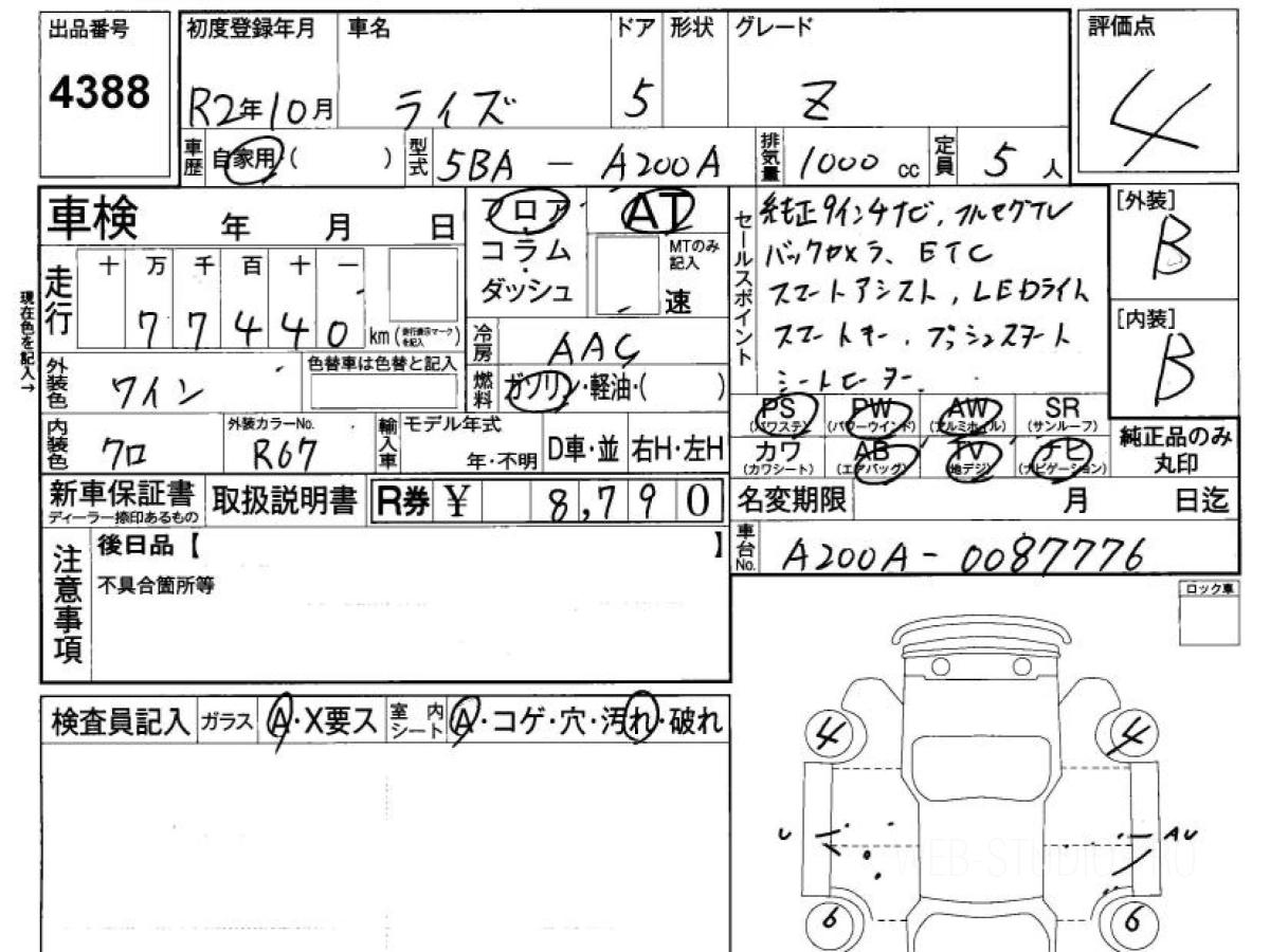 Оценка аукциона: 4, что гарантирует хорошее техническое и косметическое состояние кузова и салона.