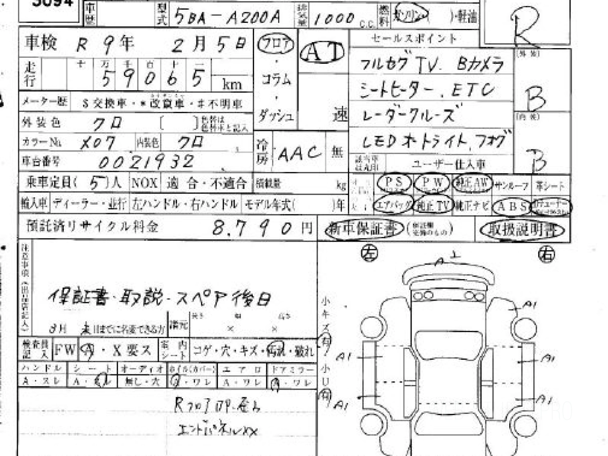Номер кузова: A200A.