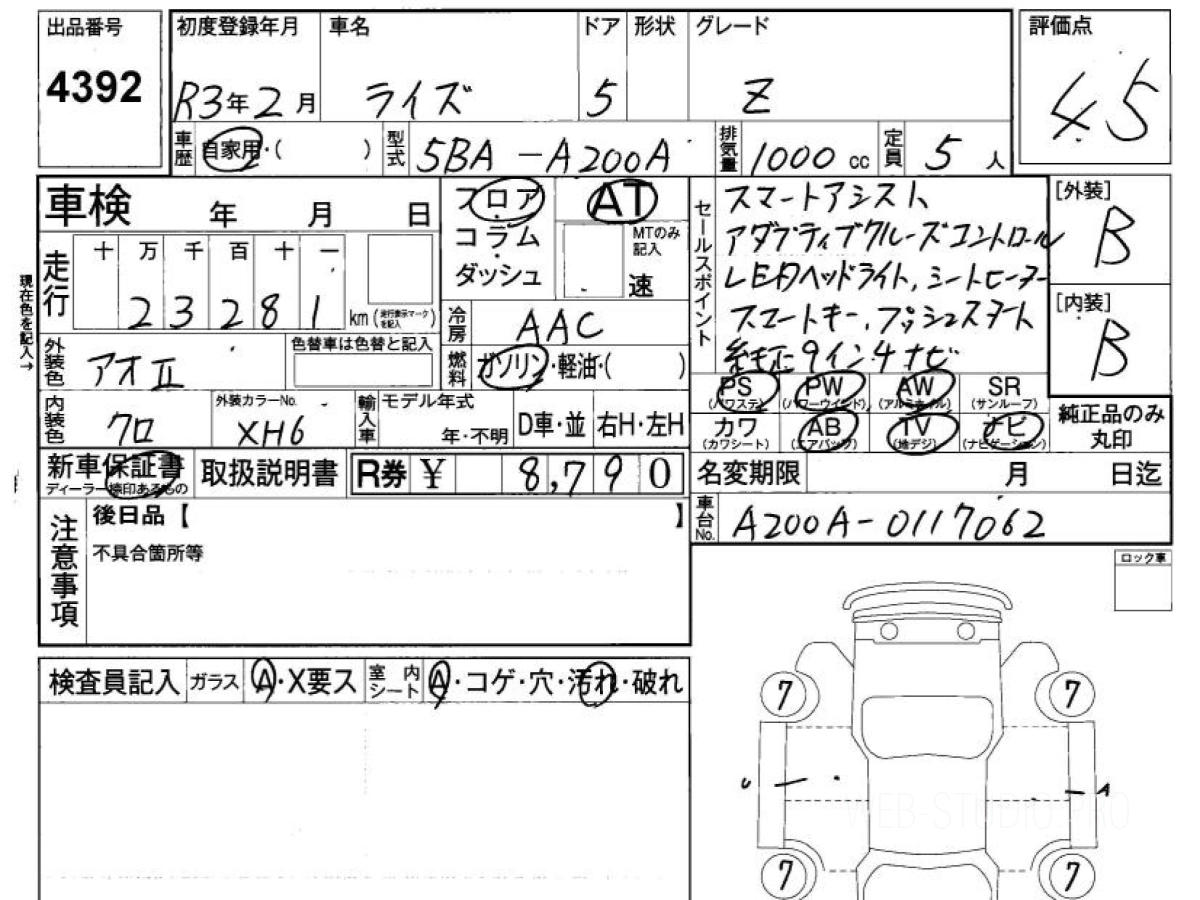 Оценка аукциона: 4.5, что гарантирует хорошее техническое и косметическое состояние кузова и салона.