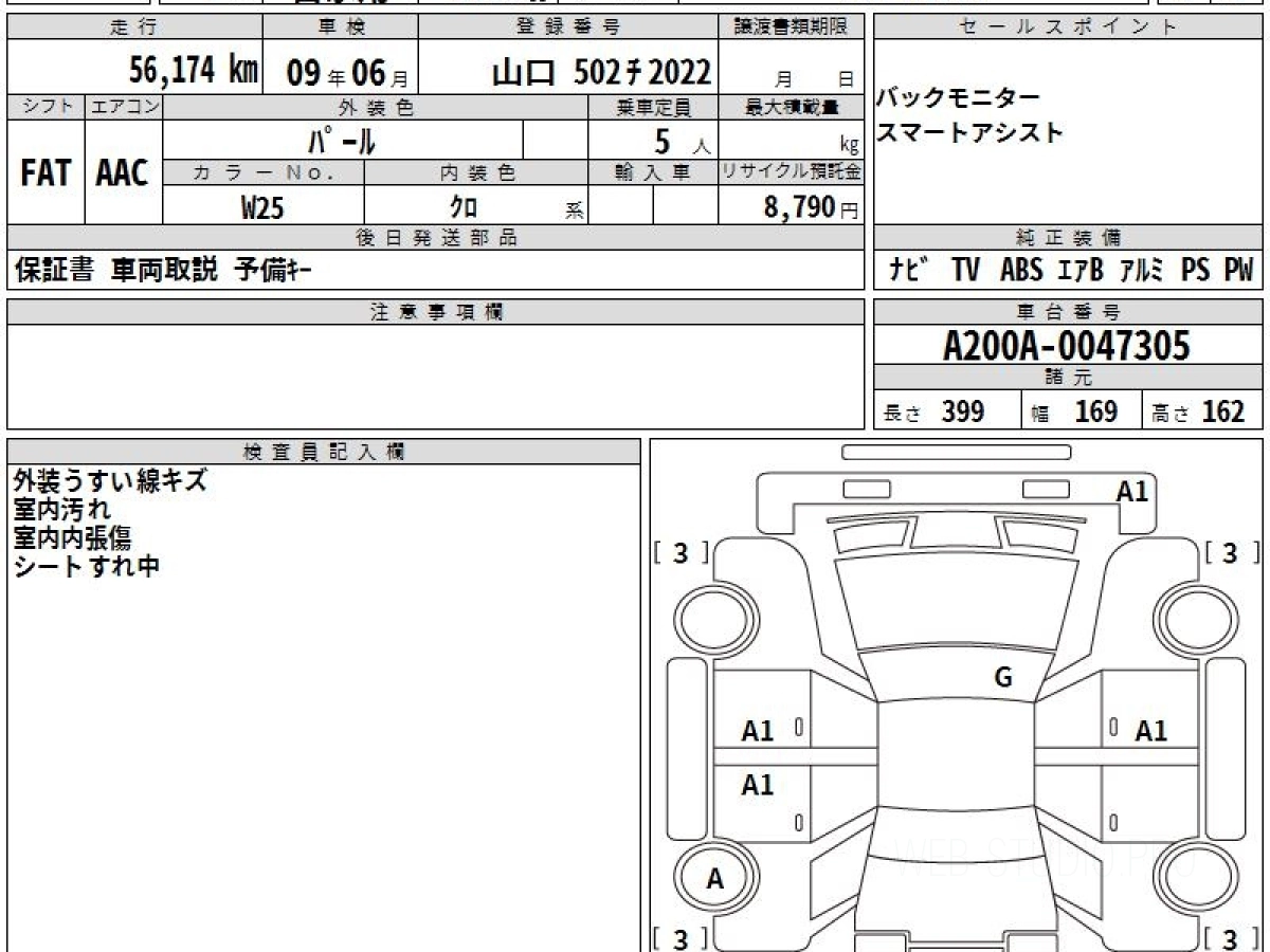 Номер кузова: A200A.