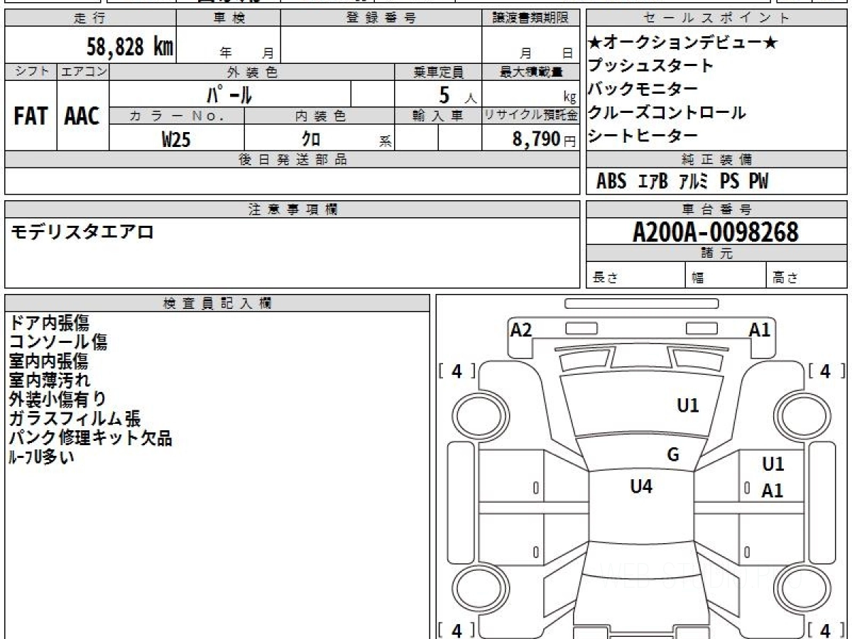 Номер кузова: A200A.