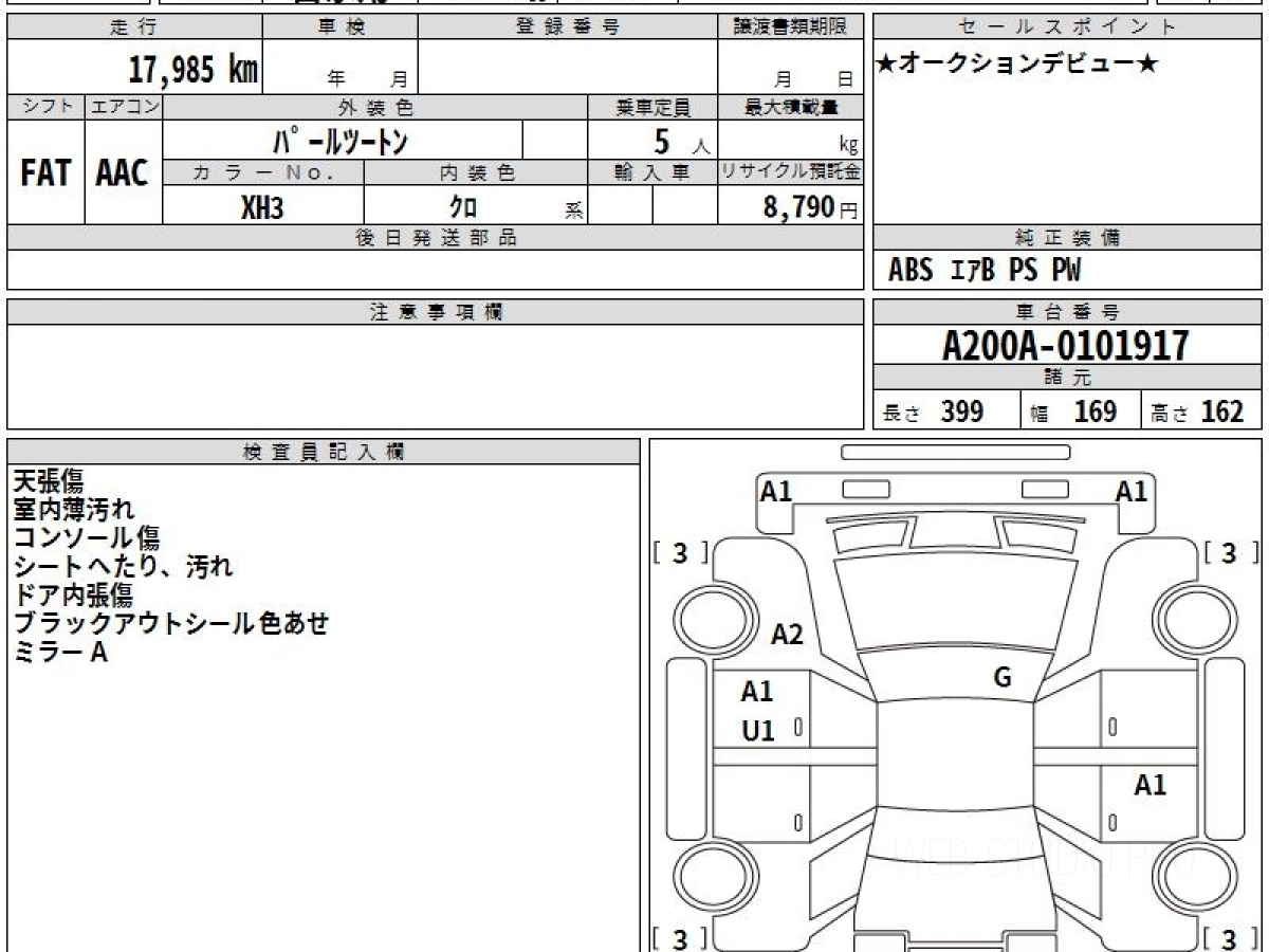 Номер кузова: A200A.