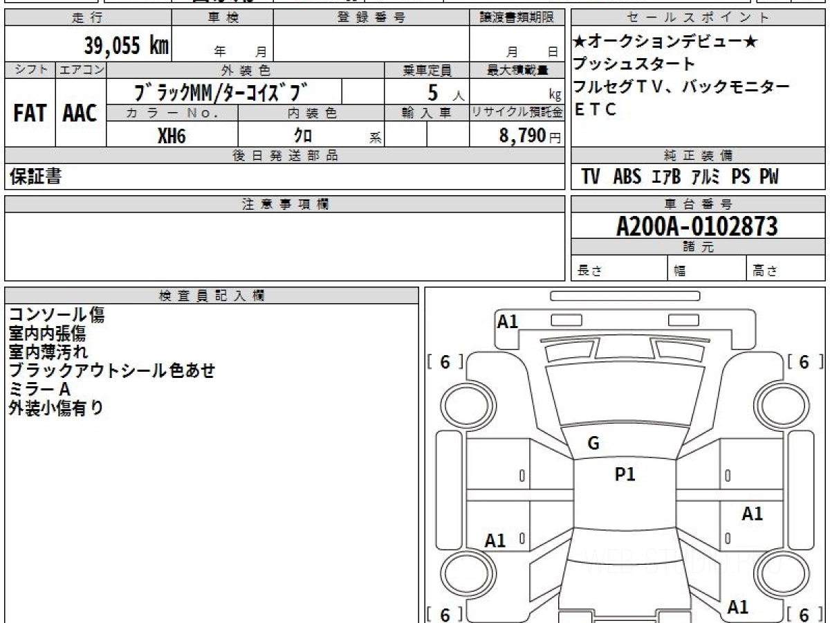 Номер кузова: A200A.