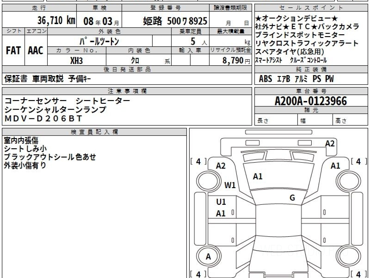 Номер кузова: A200A.