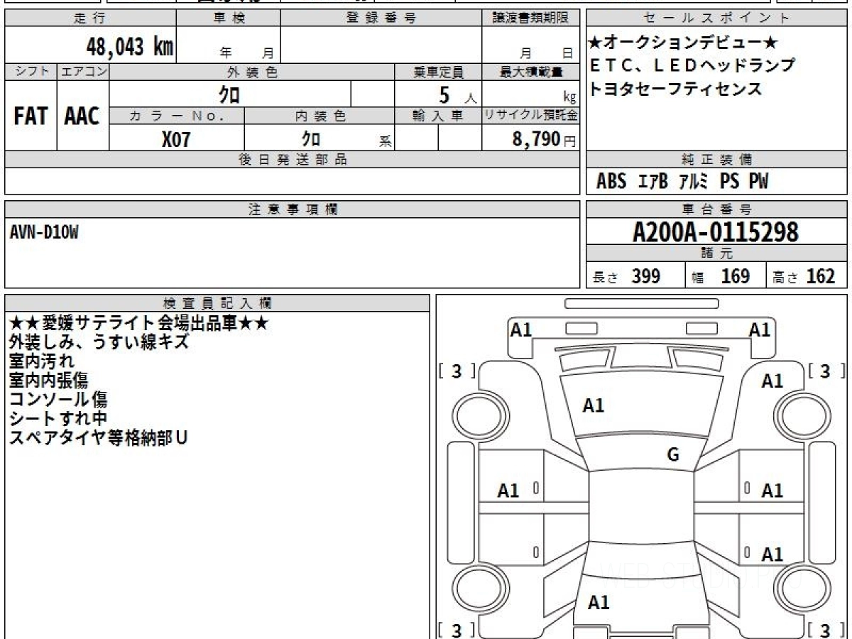 Номер кузова: A200A.