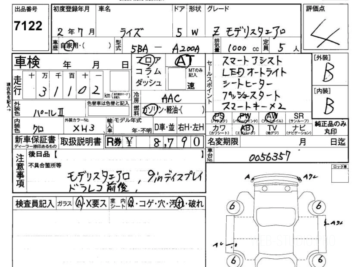 Оценка аукциона: 4, что гарантирует хорошее техническое и косметическое состояние кузова и салона.