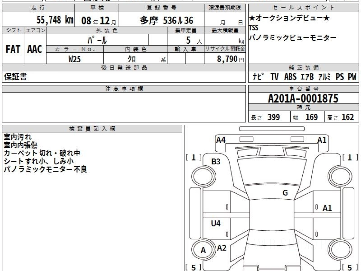 Оценка аукциона: 3.5, что гарантирует хорошее техническое и косметическое состояние кузова и салона.