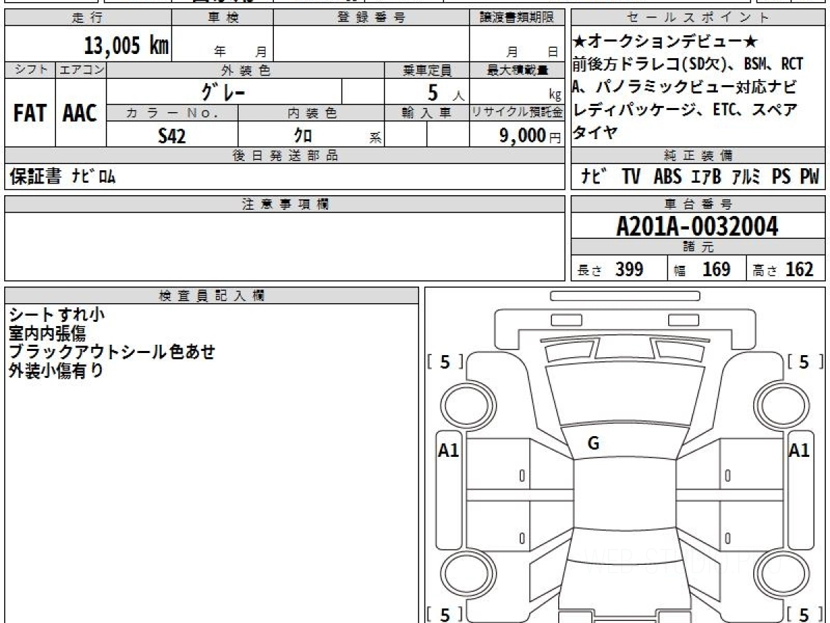 Оценка аукциона: 5, что гарантирует хорошее техническое и косметическое состояние кузова и салона.