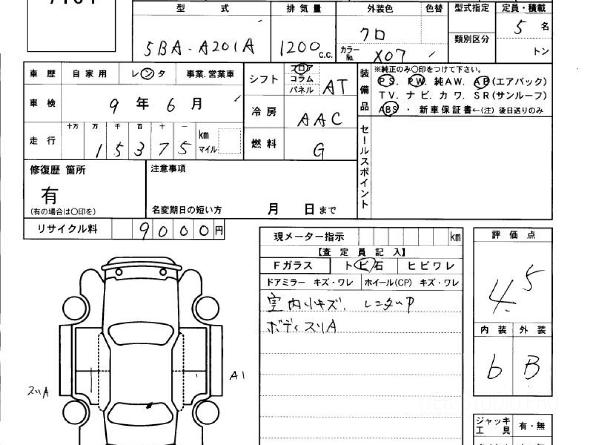 Оценка аукциона: 4.5, что гарантирует хорошее техническое и косметическое состояние кузова и салона.