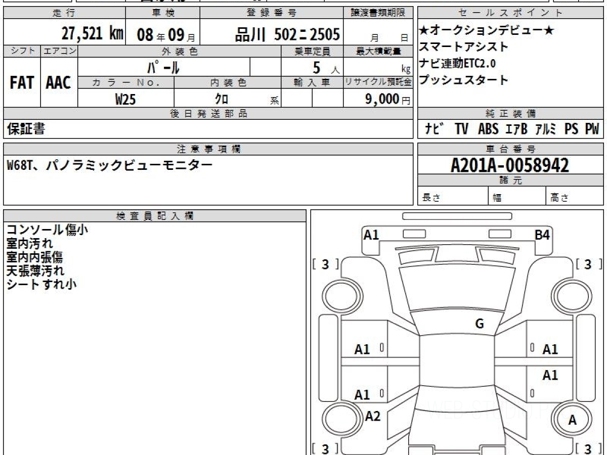 Оценка аукциона: 4, что гарантирует хорошее техническое и косметическое состояние кузова и салона.