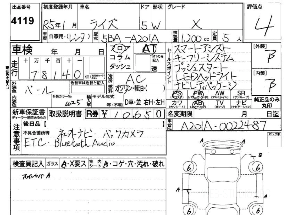Оценка аукциона: 4, что гарантирует хорошее техническое и косметическое состояние кузова и салона.