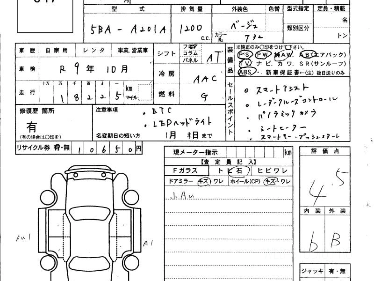 Оценка аукциона: 4.5, что гарантирует хорошее техническое и косметическое состояние кузова и салона.