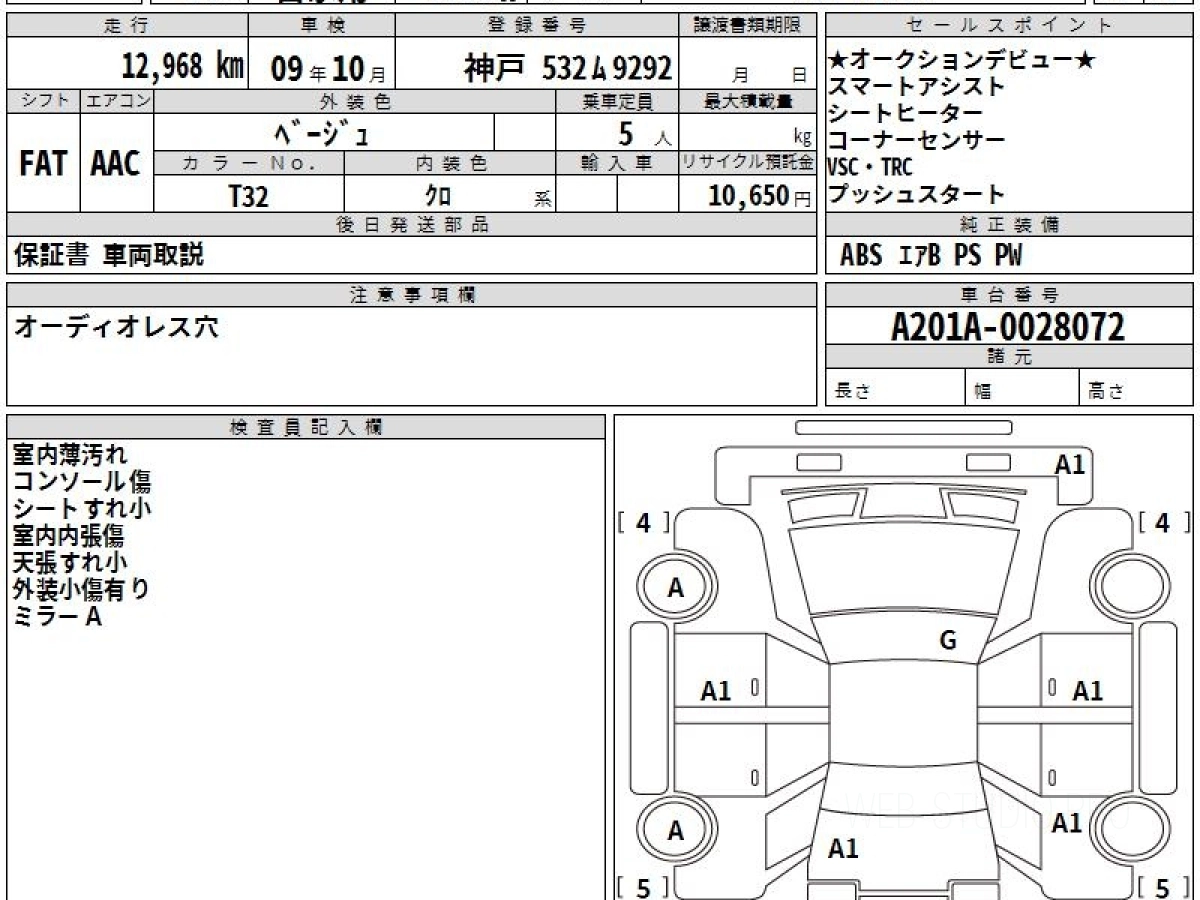 Оценка аукциона: 4.5, что гарантирует хорошее техническое и косметическое состояние кузова и салона.