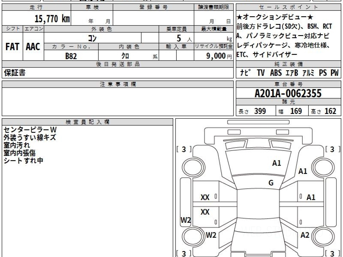 Оценка аукциона: RA, что гарантирует хорошее техническое и косметическое состояние кузова и салона.