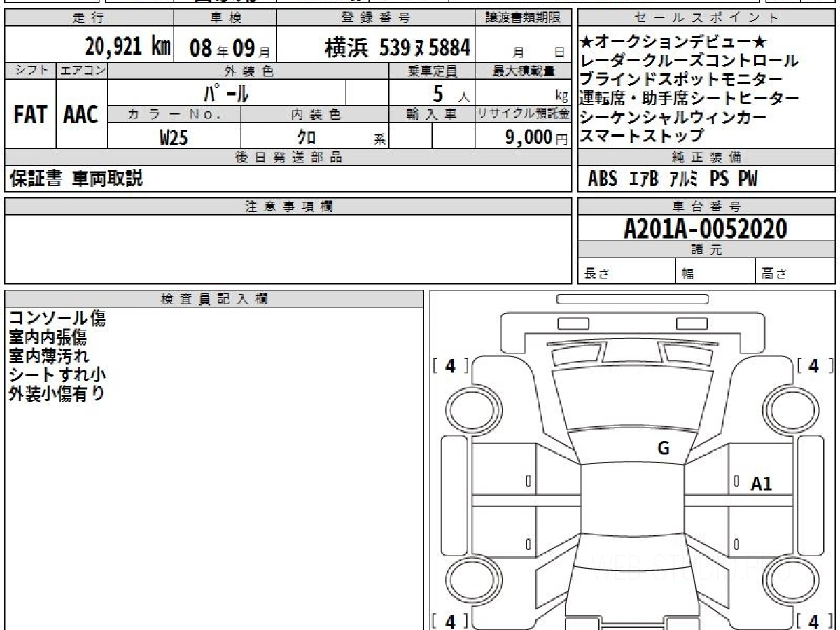 Оценка аукциона: 5, что гарантирует хорошее техническое и косметическое состояние кузова и салона.