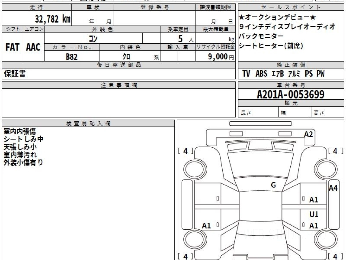 Оценка аукциона: 4, что гарантирует хорошее техническое и косметическое состояние кузова и салона.